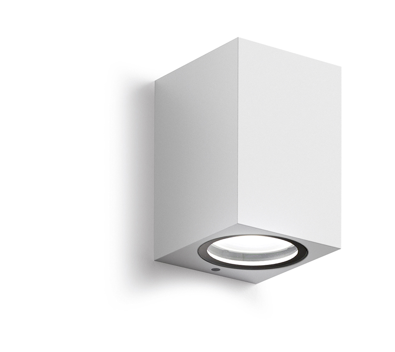 Applique. Struttura in alluminio pressofuso. Diffusore in vetro. Finitura in bianco opaco.