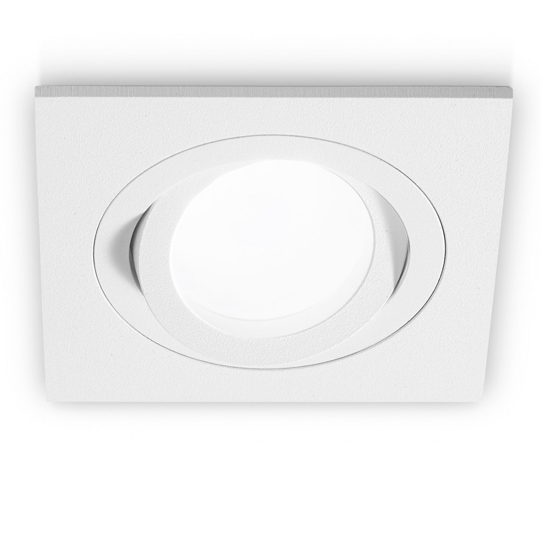 Faretto da incasso orientabile. Struttura in alluminio. Finitura in alluminio spazzolato.