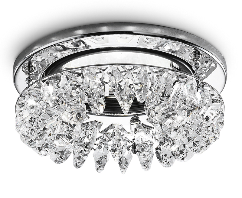Faretto da incasso. Struttura in metallo cromo con pendenti bianchi.
