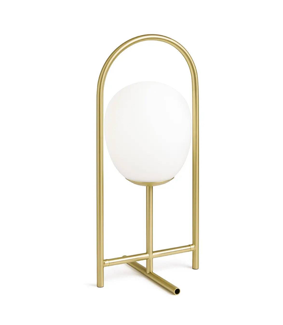 Lampada da tavolo a 1 luce in vetro bianco latte. Montatura in oro spazzolato. Cavo dotato di dimmer.