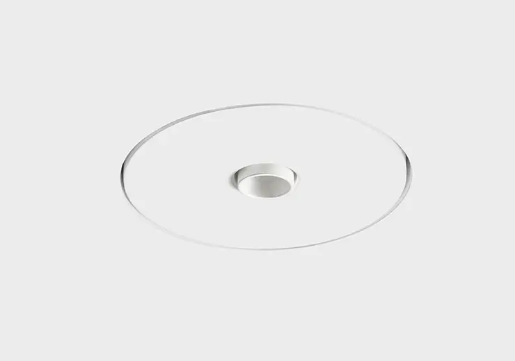 Faretto da incasso in gesso con anello in alluminio verniciato bianco. Diametro punto luce 20 mm con modulo led integrato e alimentatore a bordo. Il faretto, installabile nel cartongesso, una volta rasato risulta parte unica con la struttura.